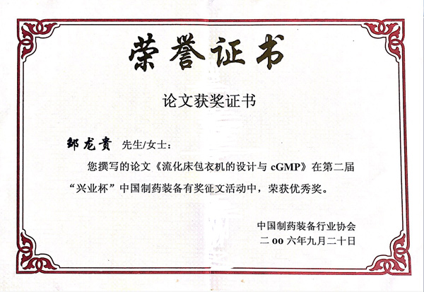 獲獎證書