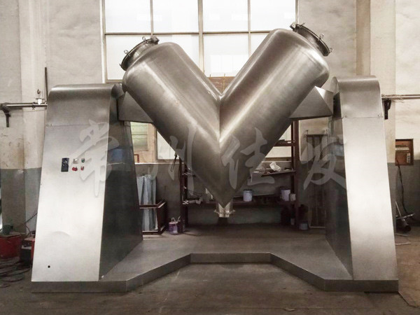 This machine uses mechanical transmission to make the materials inside the asymmetric V-shaped cylinder undergo reciprocating flipping, achieving the goal of uniform mixing.